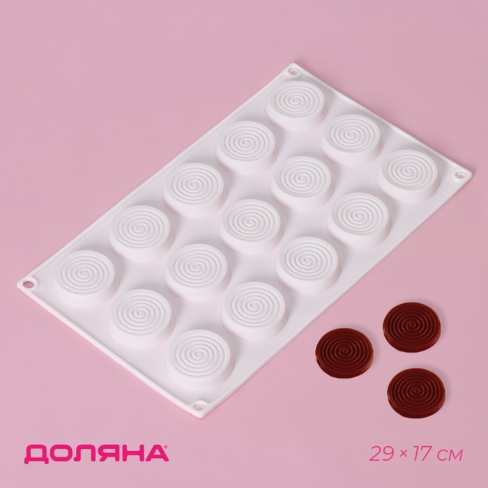 Форма для конфет и шоколада Доляна «Гипноз», силикон, 29×17×1,1 см, 15 ячеек (d=4,2 см), цвет белый