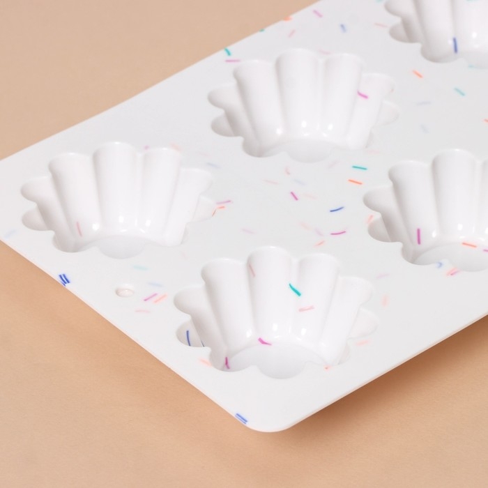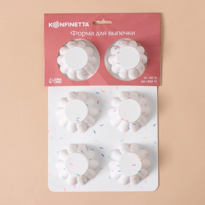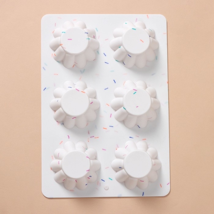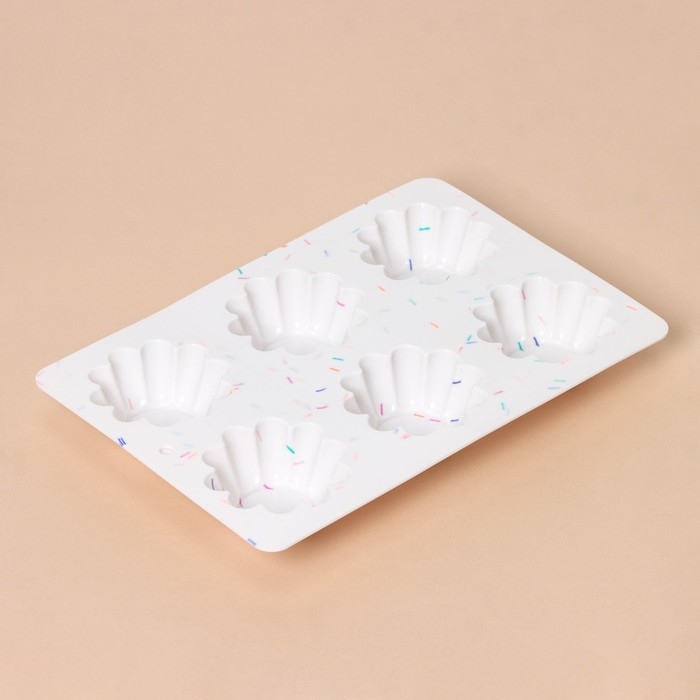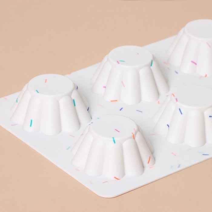 Форма для выпечки KONFINETTA «Сладости. Пудинг», силикон, 25,8×17,8×3 см, 6 ячеек (d=7 см), цвет белый