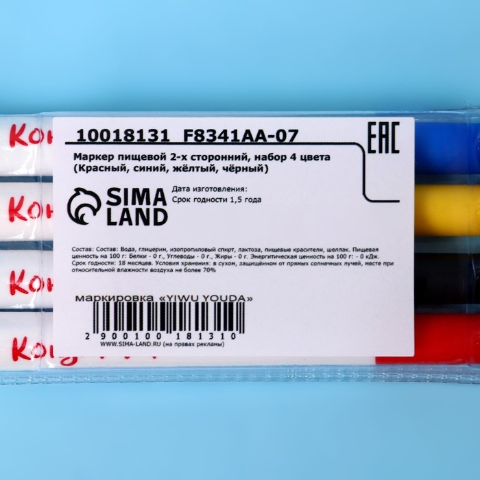 Маркер пищевой 2-х сторонний, набор 4 цвета (Красный, синий, жёлтый, чёрный)