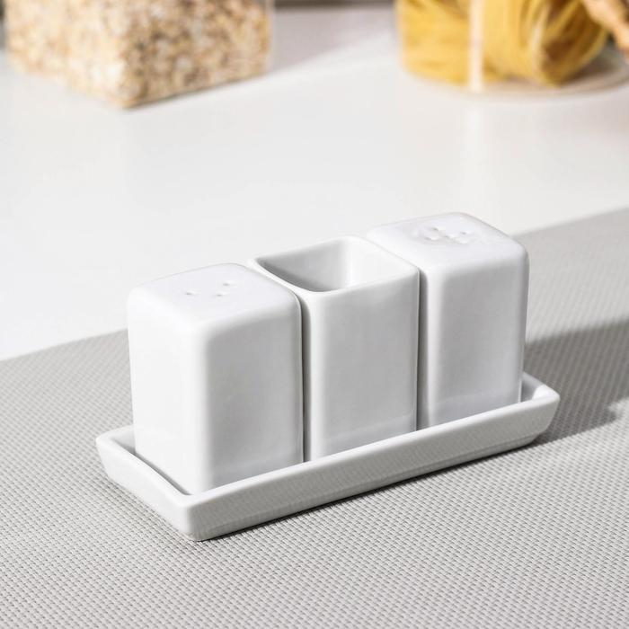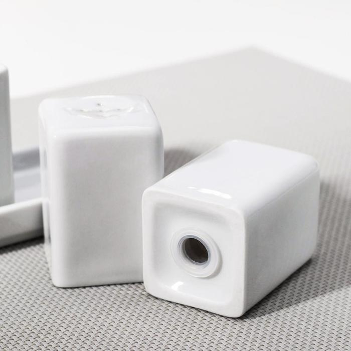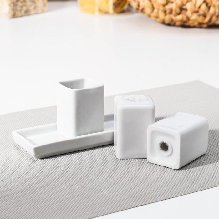 Набор для специй фарфоровый «Уют», 4 шт, солонка 50 мл, перечница 50 мл, стаканчик 60 мл, цвет белый