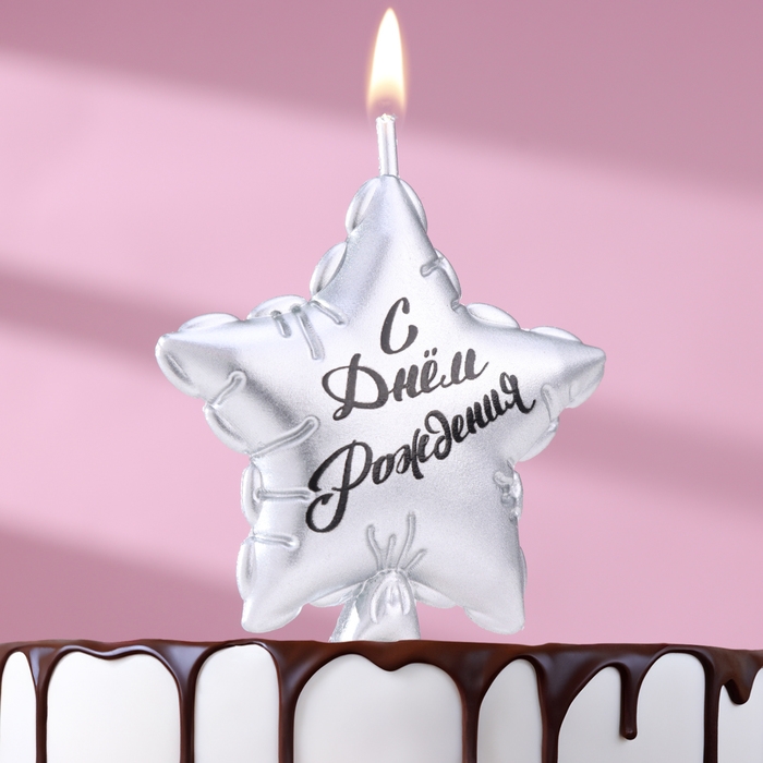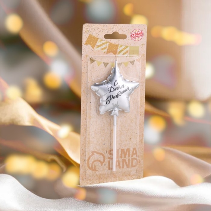 Свеча в торт "Воздушный шарик. Звезда", 5,5 см, серебро