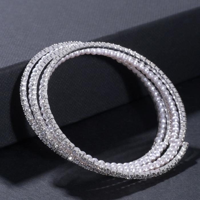 Браслет-пружинка «Жемчужинка морская» 3 ряда, цвет белый в серебре, L=7 см