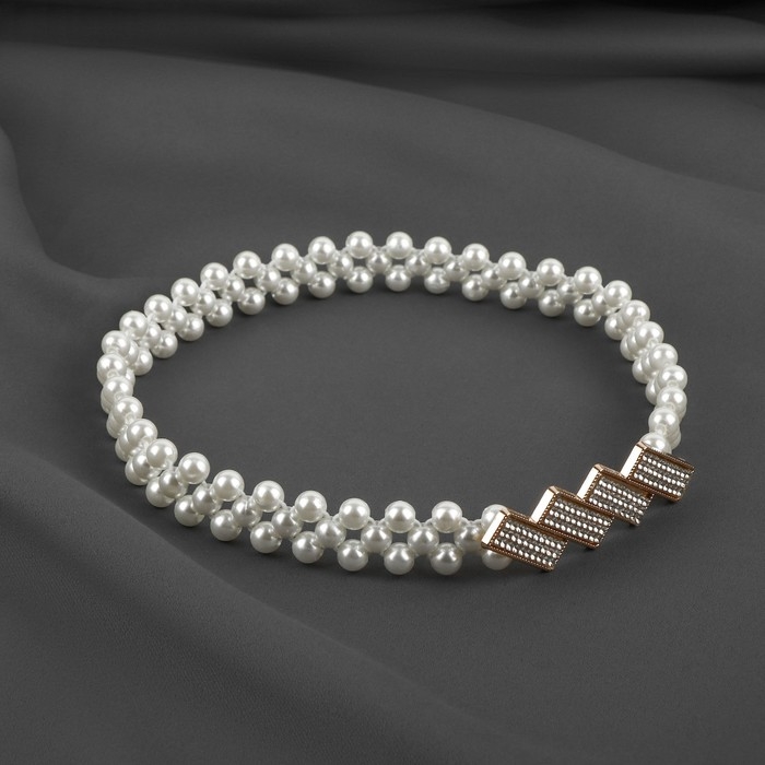 Подхват для штор «Кирпичики», жемчуг на резинке, 2,2 × 7,5 см, 2 × 45 см, цвет белый/золотой