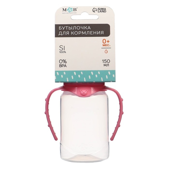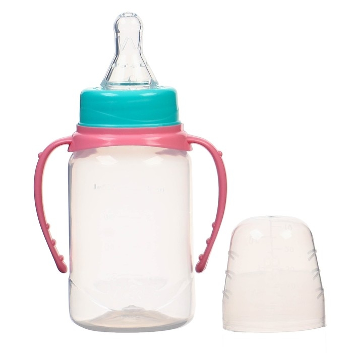 Бутылочка для кормления, классическое горло, 150 мл., от 0 мес., цилиндр, с ручками, цвет бирюзовый/розовый