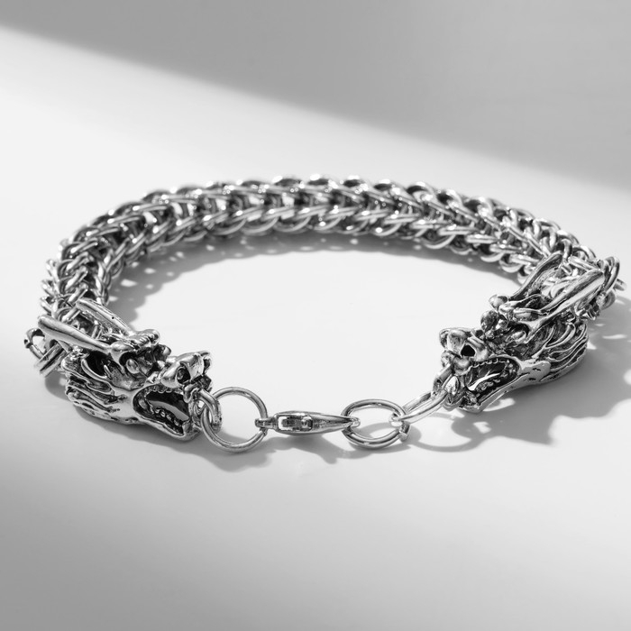 Браслет мужской «Брутал» драконы, цвет чернёное серебро, 22 см