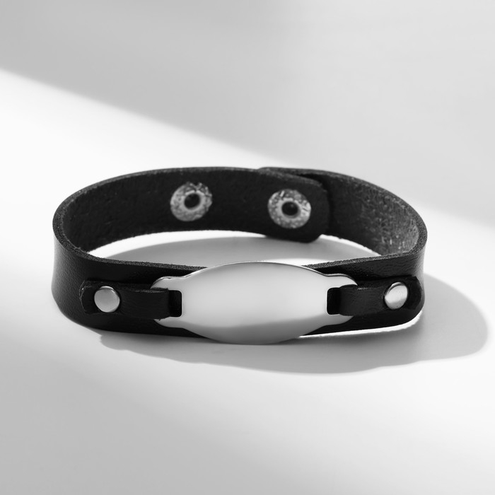 Браслет кожа «Пластина», цвет серебряно-чёрный, 23 см