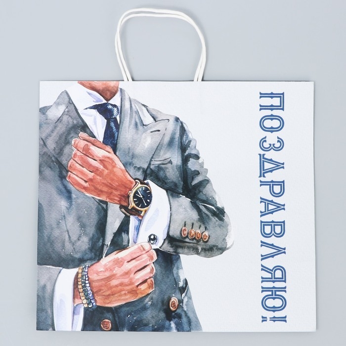 Пакет подарочный крафт, упаковка, «Джентельмен», 32 х 28 х 15 см
