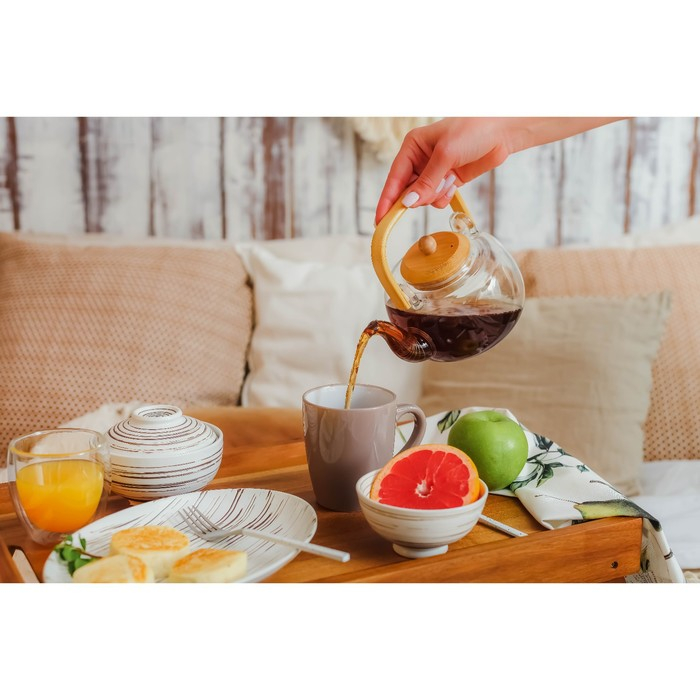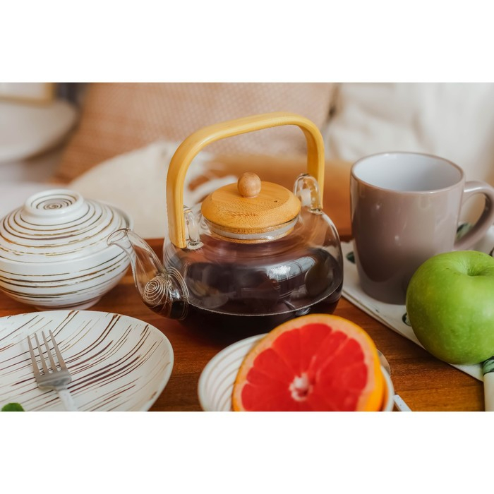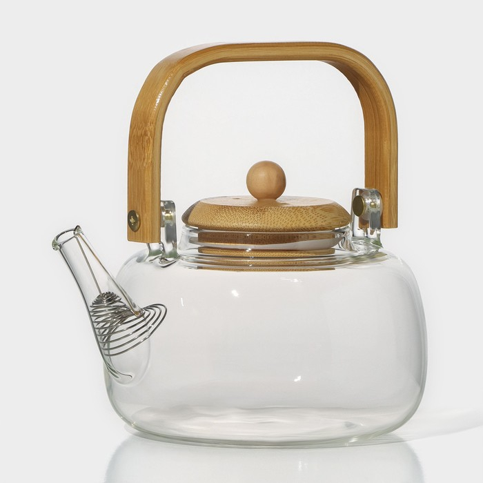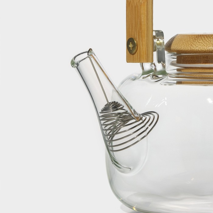 Чайник стеклянный заварочный с бамбуковой крышкой и металлическим фильтром «Эко. Бабл», 800 мл, 18×13,5×12,5 см