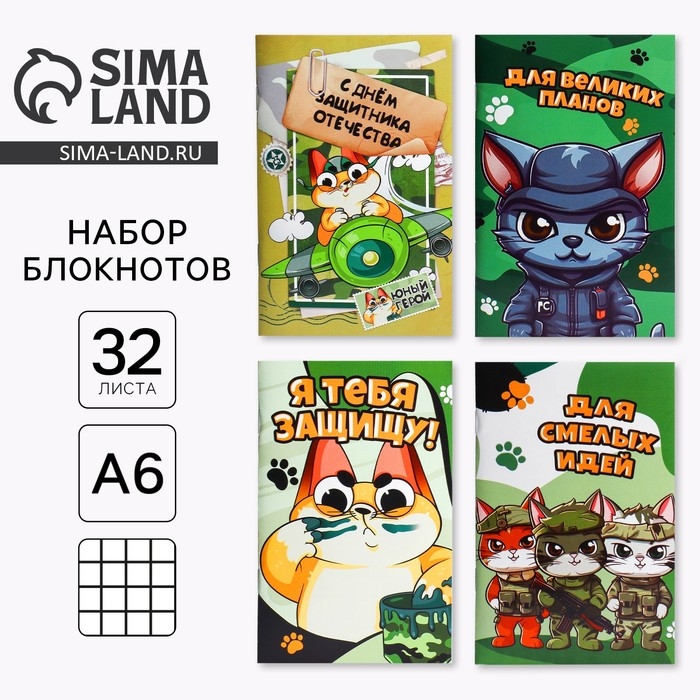 Блокнот А6, 32 л «Котик защитник» Набор из 4 шт в пакете