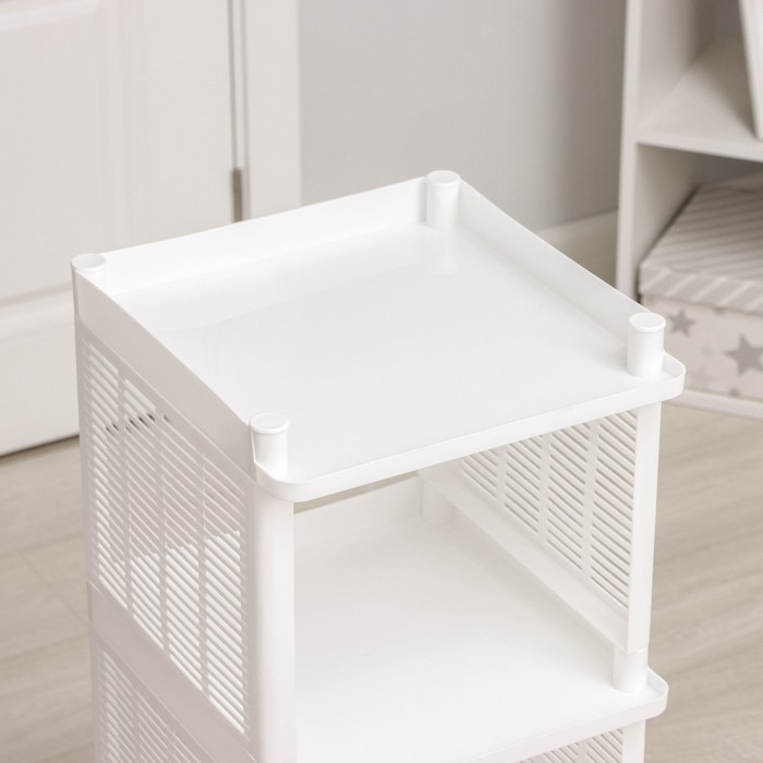 Этажерка напольная 4-х секционная Доляна, на колёсах, 31×34×77 см, цвет белый