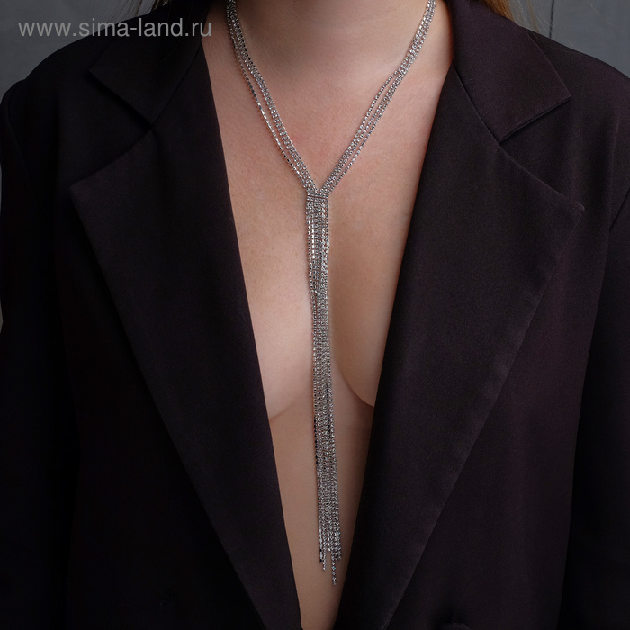 Набор 2 предмета; серьги, колье «Легкий флирт» дождик, белый в серебре, 40 см