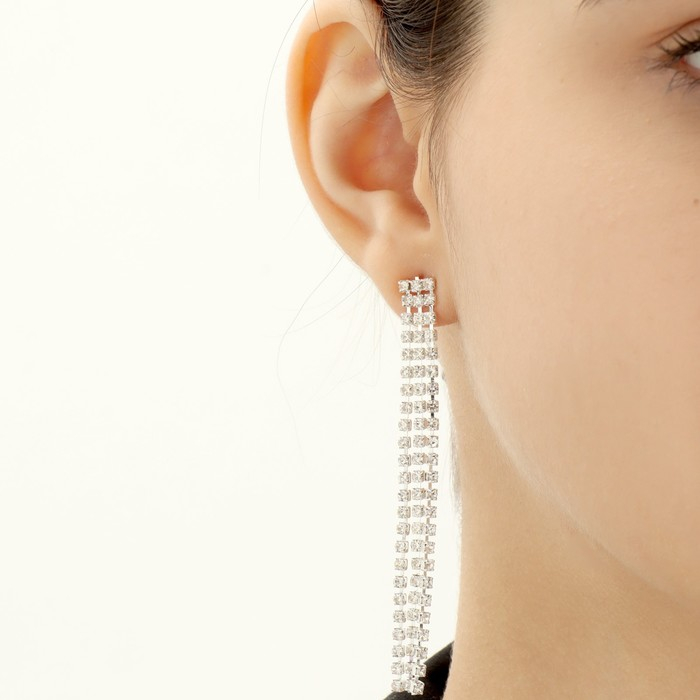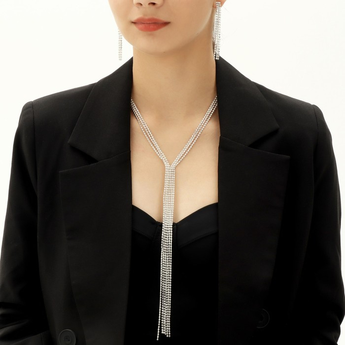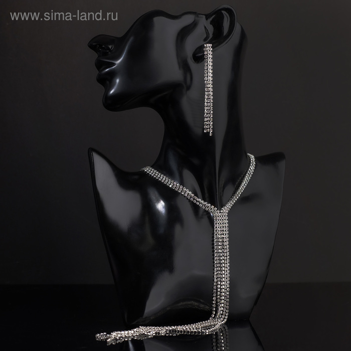 Набор 2 предмета: серьги, колье «Лёд» дорожка, цвет белый в серебре, 50 см