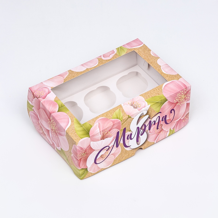 Коробка для капкейка «8 марта», 16 х 8 х 7.5 см