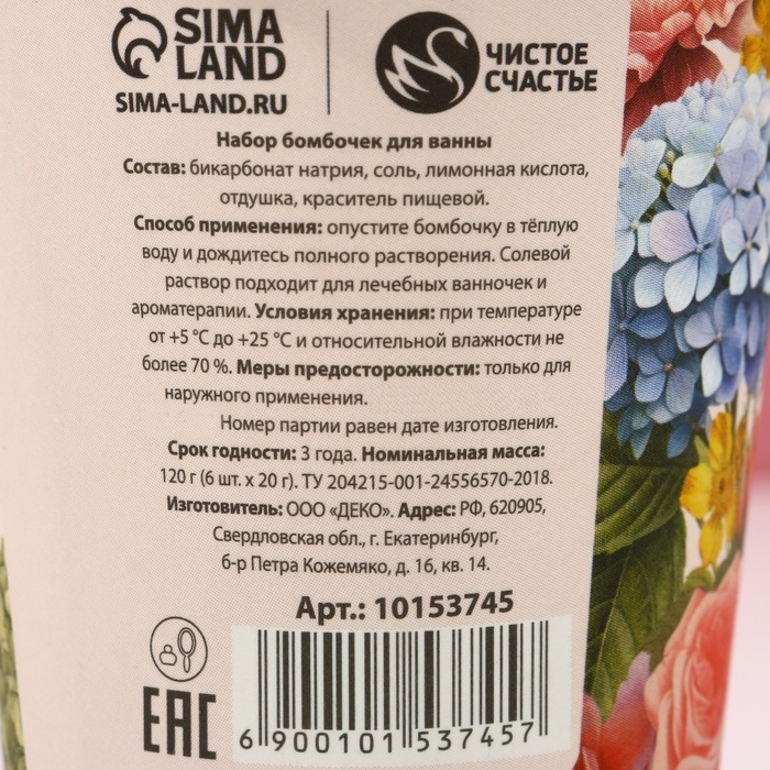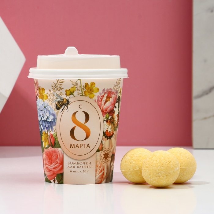 Подарочный набор косметики «С 8 Марта!», бомбочки для ванны 6 х 20 г, ЧИСТОЕ СЧАСТЬЕ