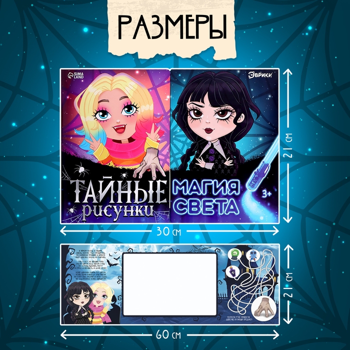 Набор для рисования светом «Магия света: Уэнсдей», А4, ручка с фонариком и невидимыми чернилами