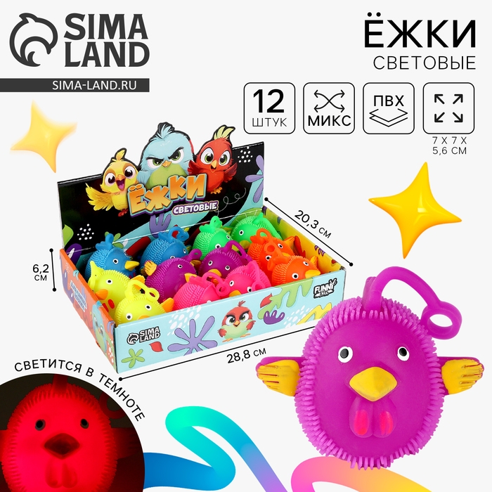 Мяч детский резиновый ёжка световой «Злые птички», цвета МИКС , в шоубоксе