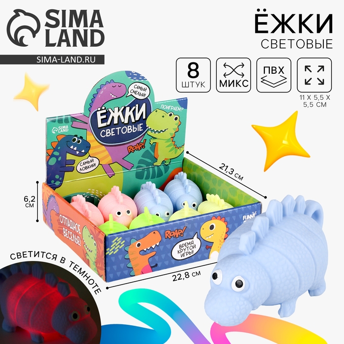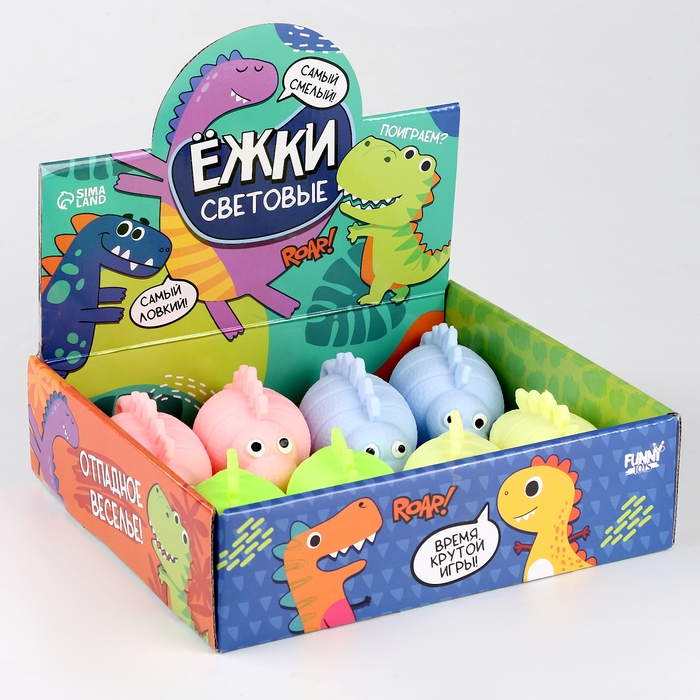Мяч детский резиновый ёжка световой «Дино», цвета МИКС , в шоубоксе