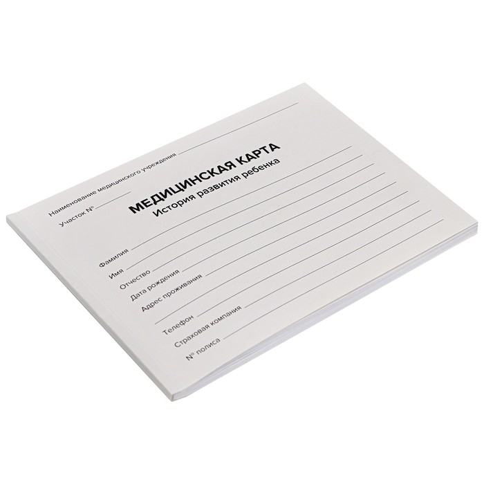 Медицинская карта ребёнка А4, 16 листов, обложка - офсет 160 г/м², блок офсет 65 г/м². Форма № 026/у-2000