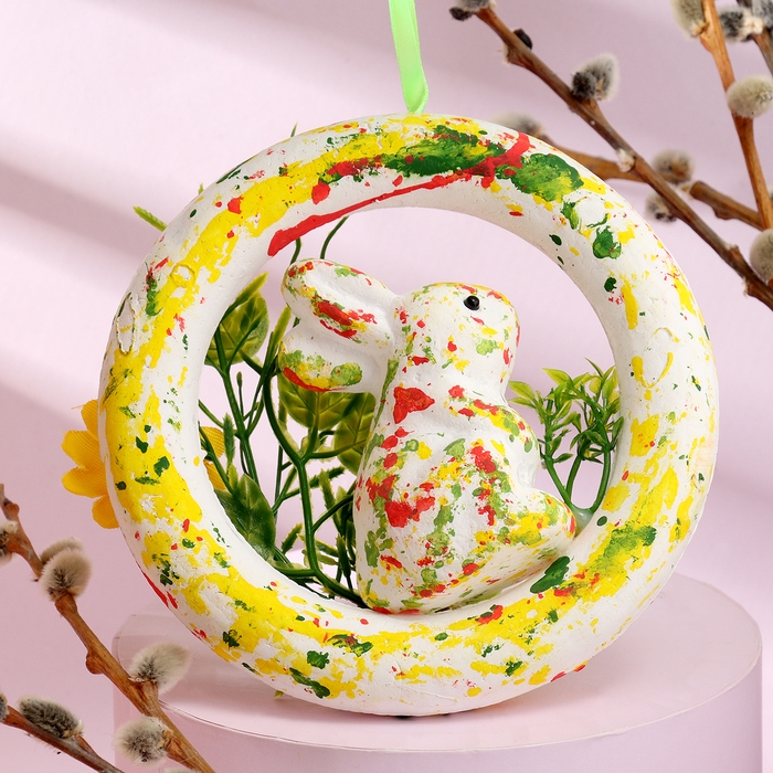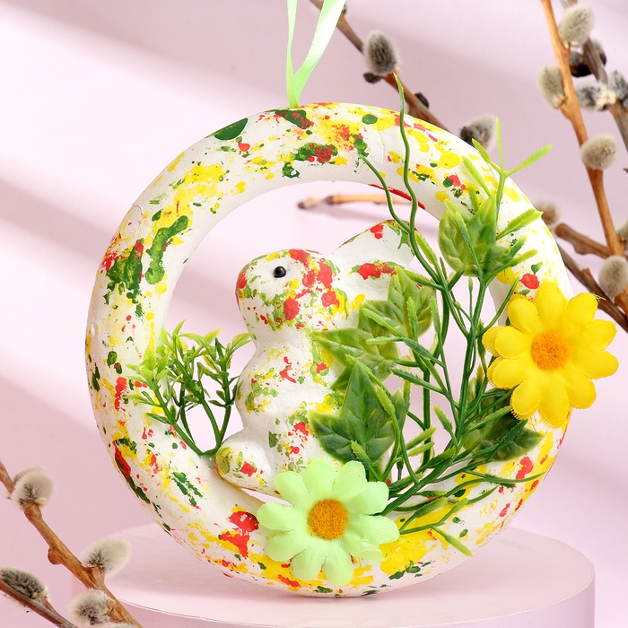 Декоративная пасхальная подвеска «Зайчик в траве» 5 × 15 × 15 см