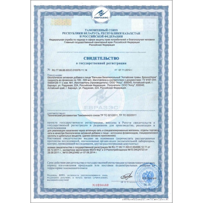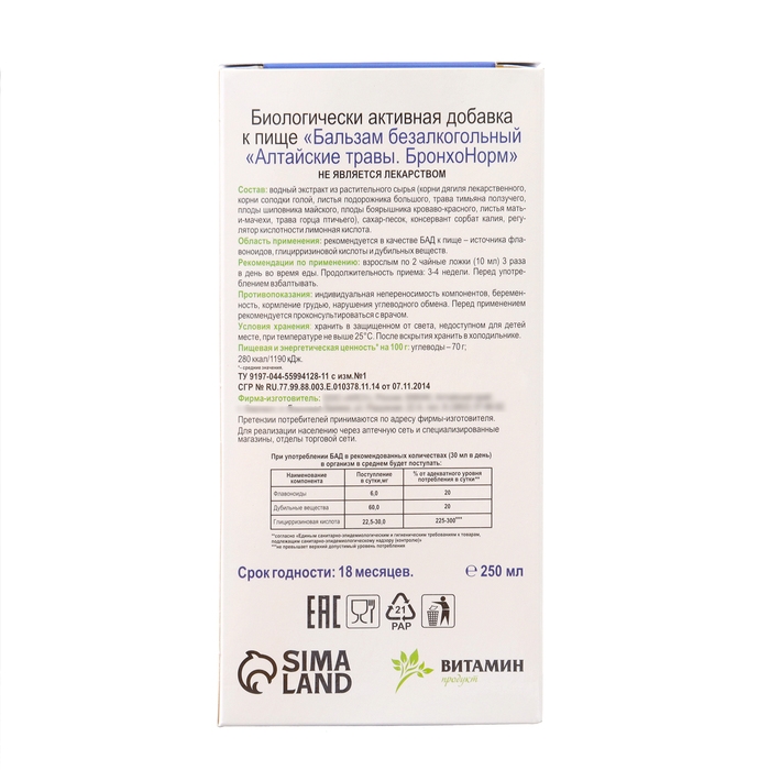Бальзам Алтайские Травы "БронхоНорм" при простуде, 250 мл стекло