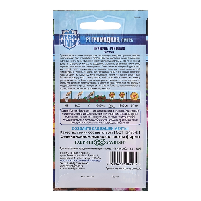 Семена цветов Примула "Раннецветущая", смесь окрасок, F1, 7 шт