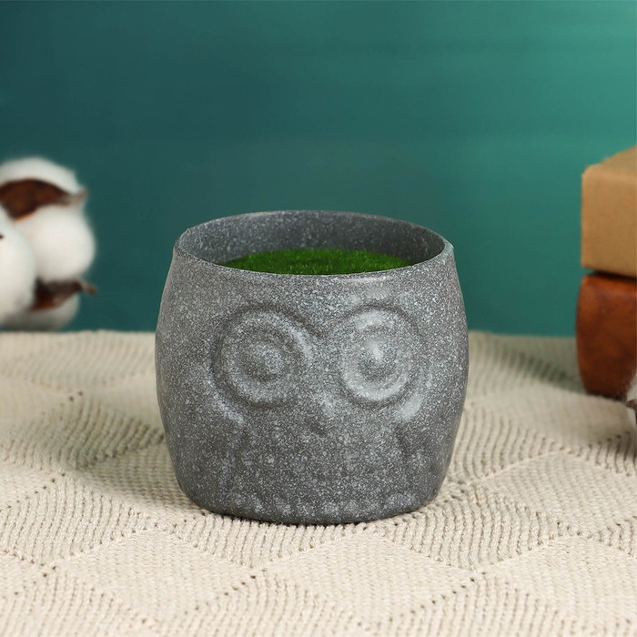 Флористическое кашпо "Совенок" серое, 6,5х6,5х6см