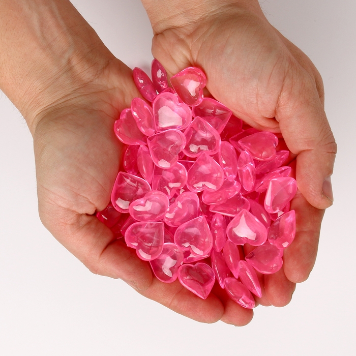 Сердечки пластиковые декоративные, набор 100 шт., размер 1 шт. — 2 × 2 см, цвет розовый
