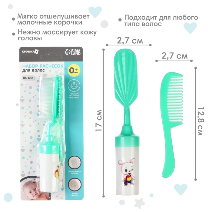 Расческа-щетка с мягкой щетиной и удобная расческа с закругленными зубчиками предназначены для малышей с первых дней жизни.