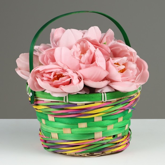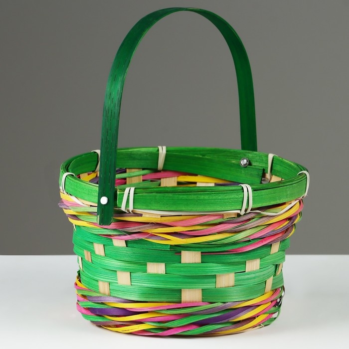 Корзина плетеная, D18 х 11 х 24 см, зеленая, бамбук