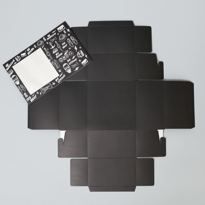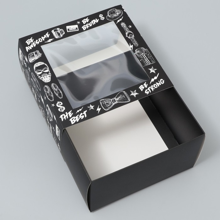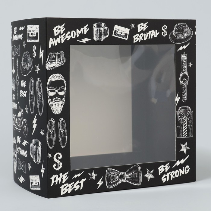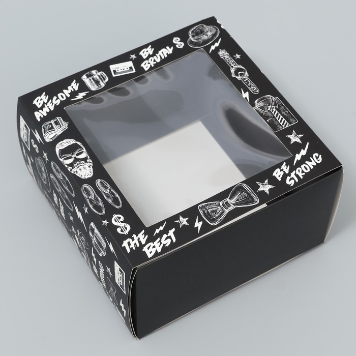 Коробка складная, крышка-дно, " Настоящему мужчине", 16,5 х 12,5 х 5,2 см с окном