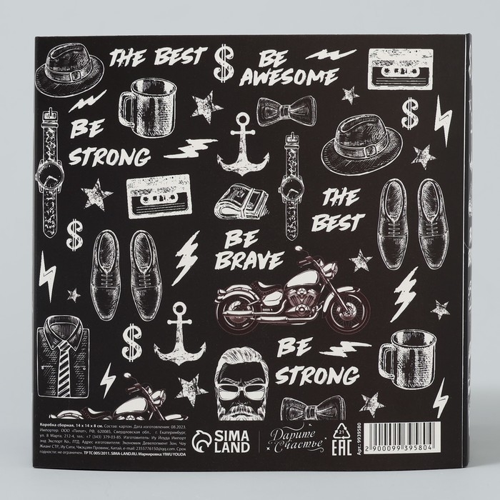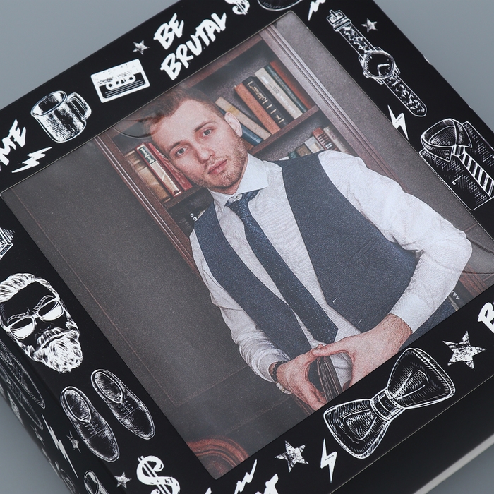 Коробка-фоторамка подарочная складная, упаковка, «Мужская», 14 х 14 х 8 см