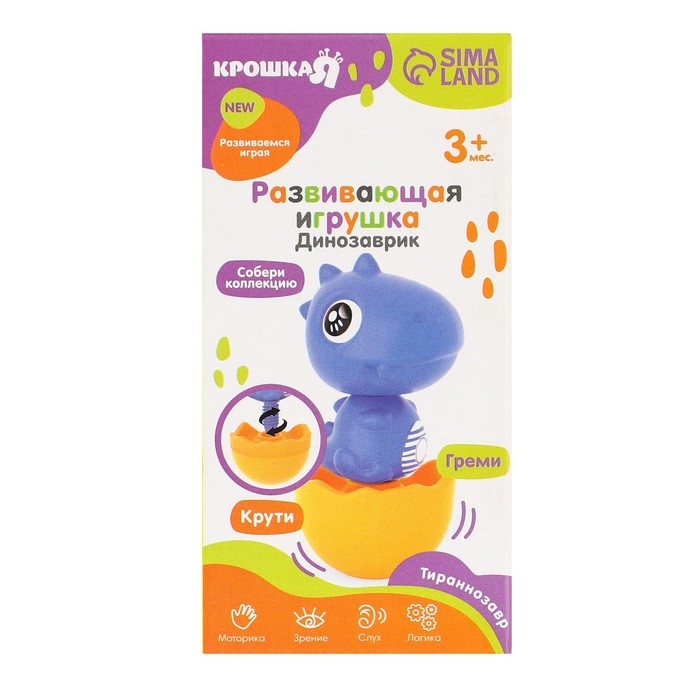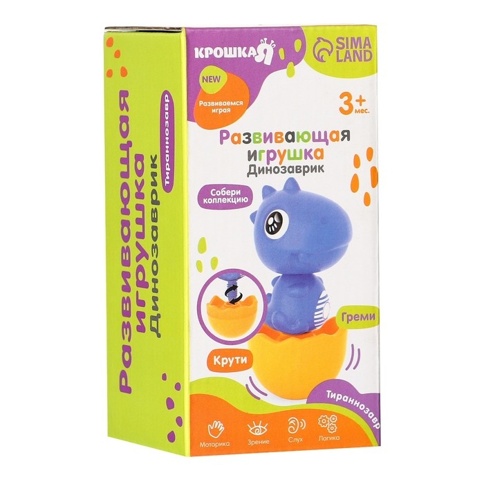 Веселый динозавр надолго привлечет внимание ребенка. Динозаврик откручивается от яйца, а голова игрушки отсоединяется от тельца. Внутри яйца есть погремушка, которая поможет малышу в развитии слухового восприятия. Игрушка развивает моторику, визуальное восприятие, фонтозию и логику.