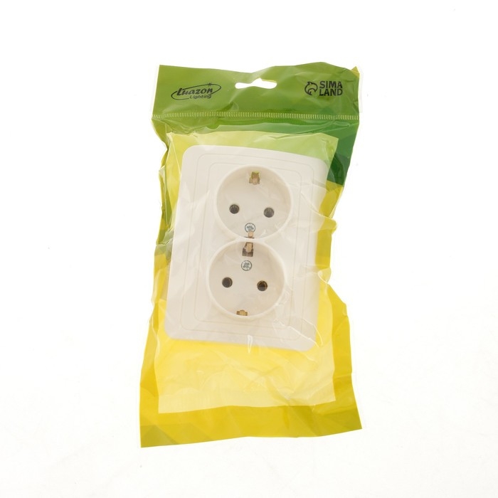 Розетка двухместная Luazon Lighting "Орион", 16 А, скрытая, с з/к, белая