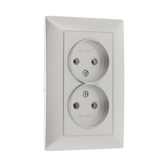 Розетка двухместная Luazon Lighting "Антей", 10 А, скрытая, без з/к, серебристая
