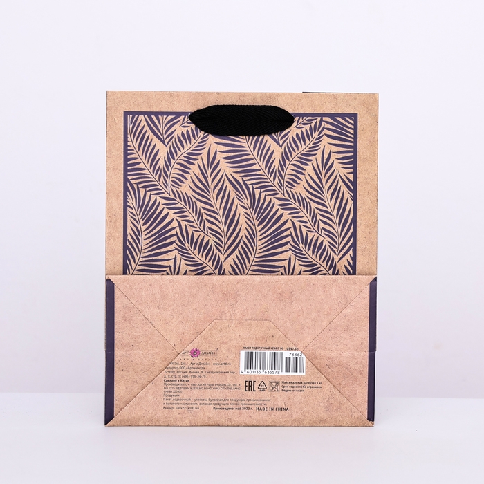Пакет крафт "Лиственный арт" 18 х 22,3 х 10 см