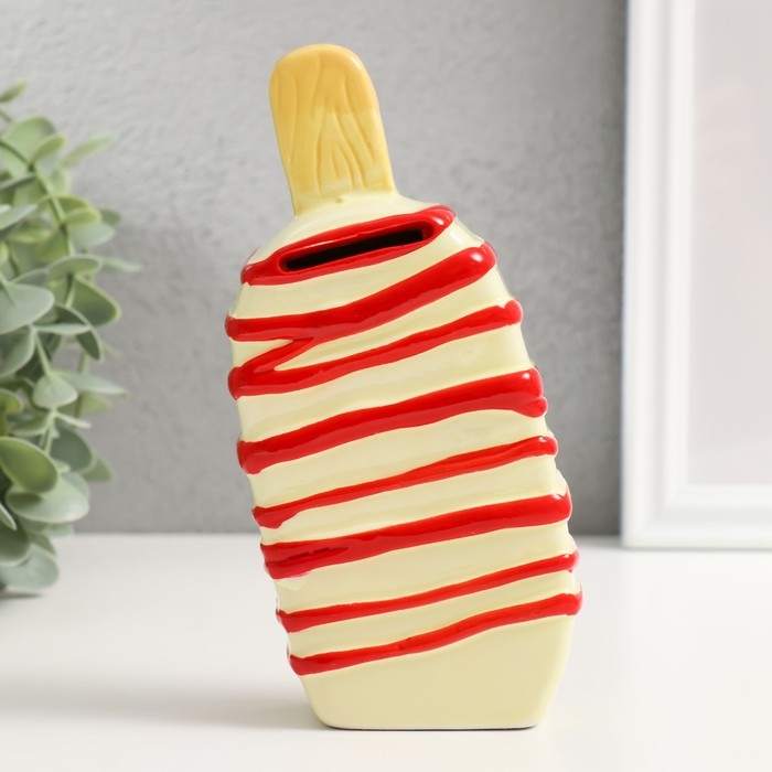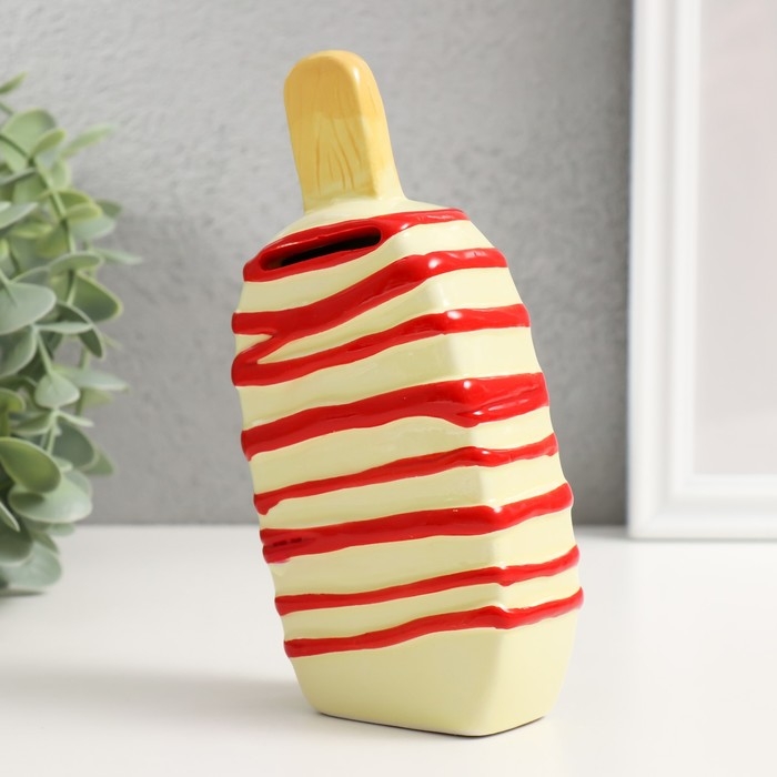 Копилка керамика "Подтаевшее эскимо" красные полоски 8,2х3,8х15,5 см