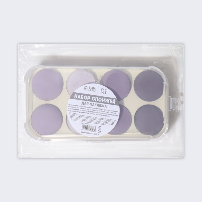 Спонжи для макияжа, набор - 8 шт, увеличиваются при намокании, цвет фиолетовый