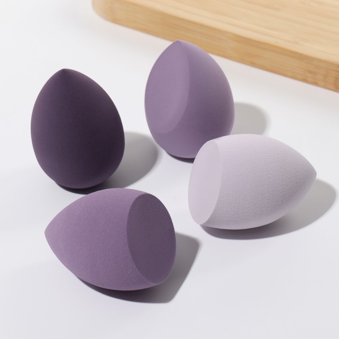 Спонжи для макияжа, набор - 4 шт, увеличиваются при намокании, цвет фиолетовый