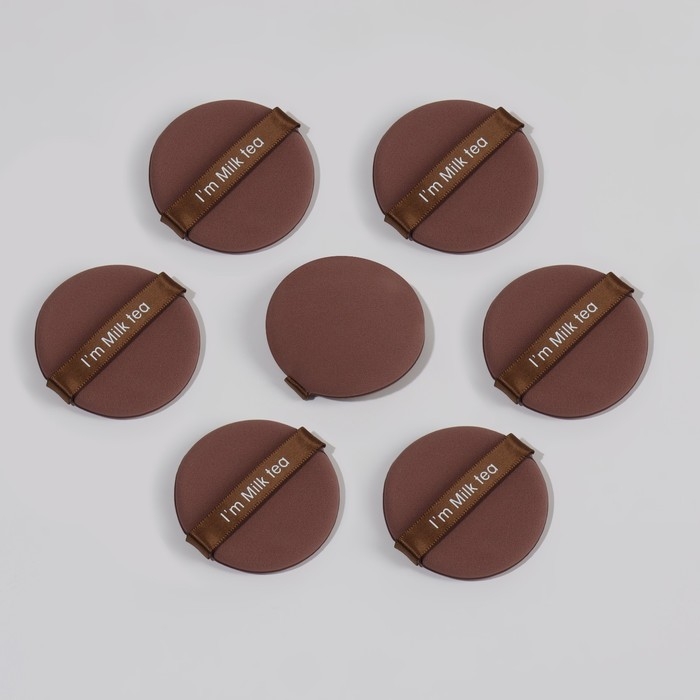 Спонжи для макияжа «MILK TEA», набор - 7 шт, d = 5,5 см, с держателем, в футляре, цвет коричневый