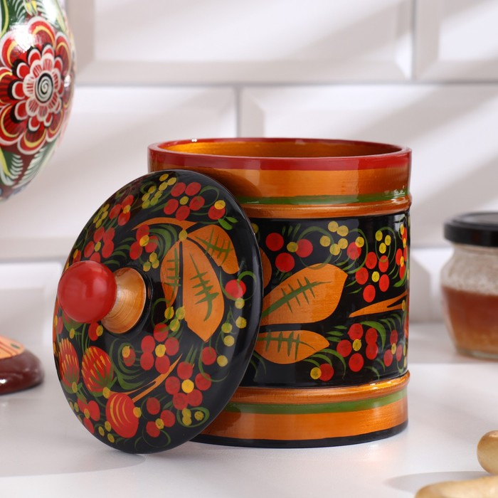 Кадочка «Земляничка», средняя, 8,5×15 см, хохлома