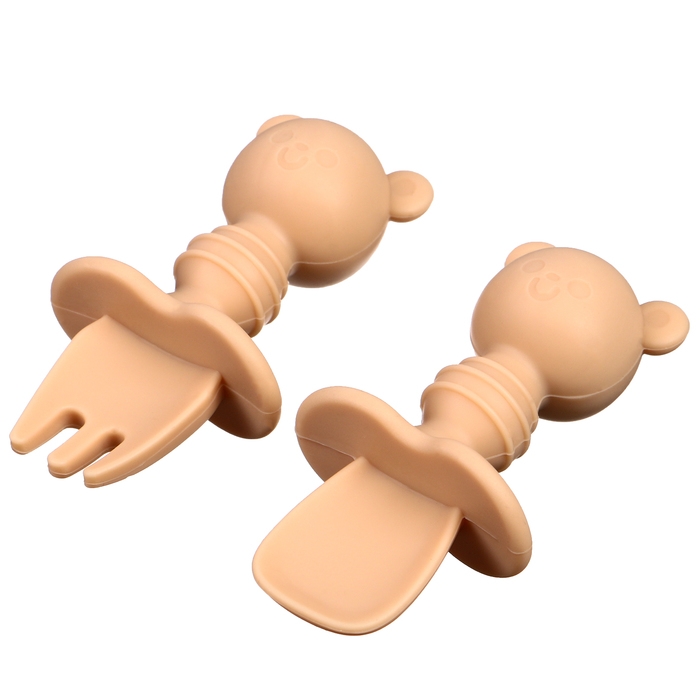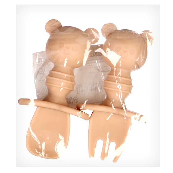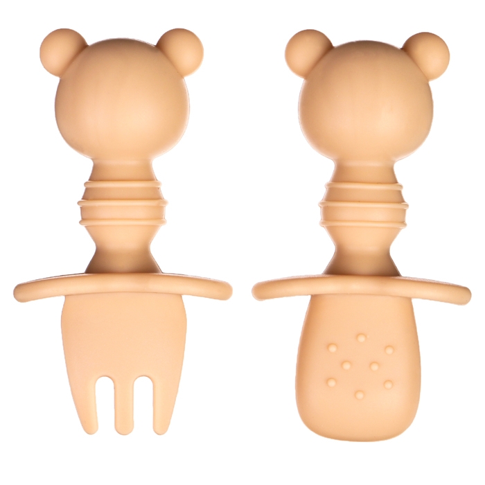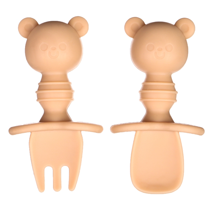 Набор детских столовых приборов "Медвежата", вилка, ложка, цвет бежевый
