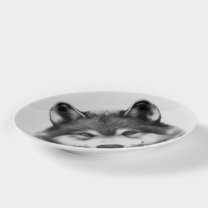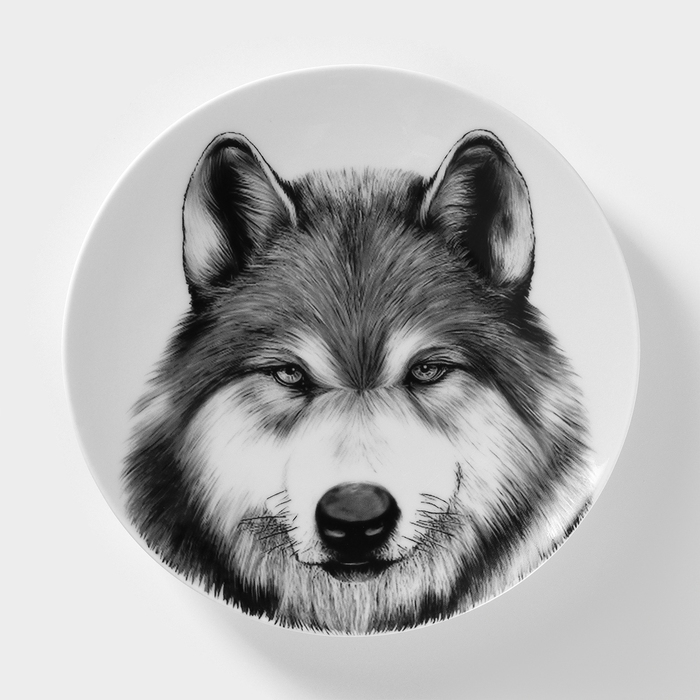 Тарелка фарфоровая «Волк», d=20 см, белая