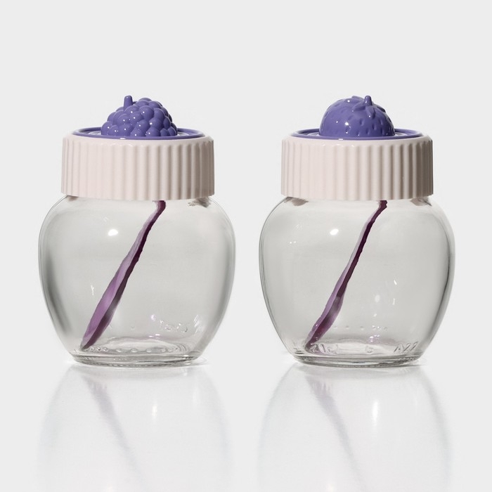 Банка стеклянная для сыпучих продуктов Renga Strawberry , 210 мл, с крышкой и ложкой, крышка МИКС