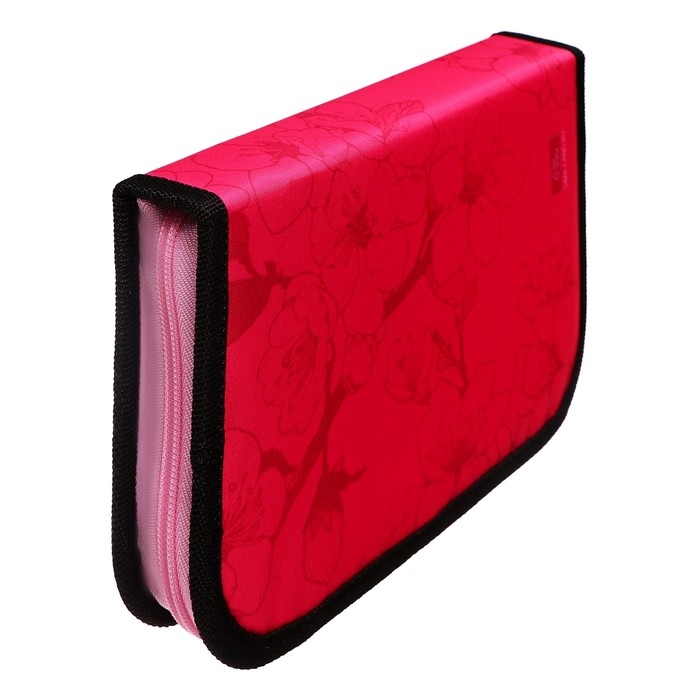 Пенал 1 секция, 130 х 210 х 40 мм, 2 откидные планки, тканевый, Calligrata TOP, Content "Аниме сакура"