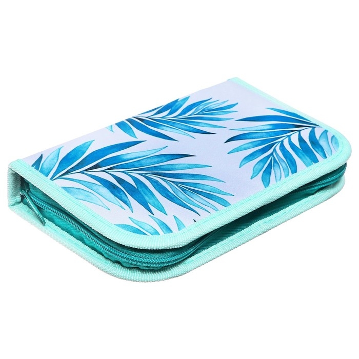 Пенал 1 секция, 130 х 210 х 40 мм, 2 откидные планки, тканевый, Calligrata TOP, Content "Тропики"