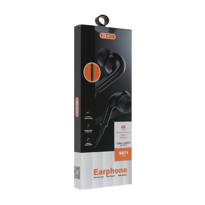 Наушники BYZ S871, проводные, вакуумные, микрофон, 3.5 мм, 1.2 м, чёрные