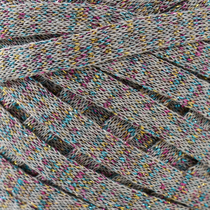 Трикотажная пряжа "Риббон" с люрексом 85м/170±5 гр (Серый, люрекс: Радуга)