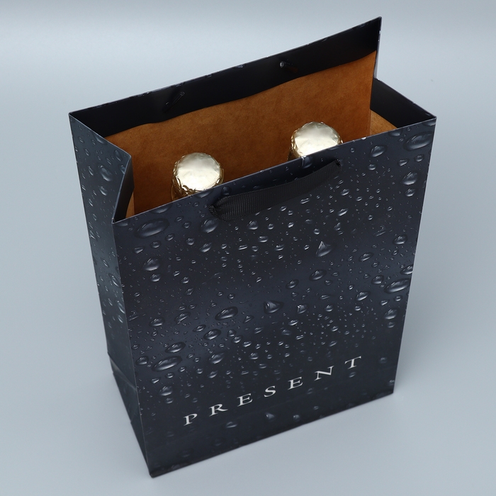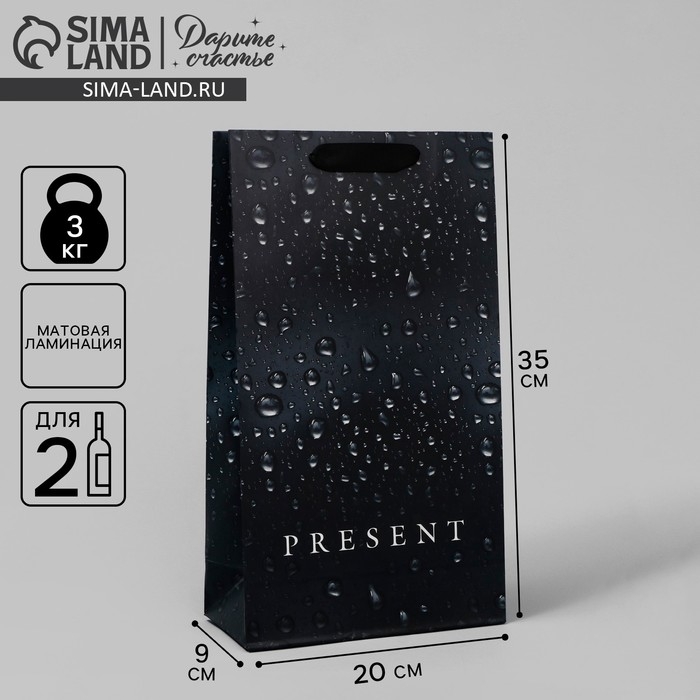 Пакет подарочный под две бутылки, упаковка, Black, 35 х 20 х 9 см