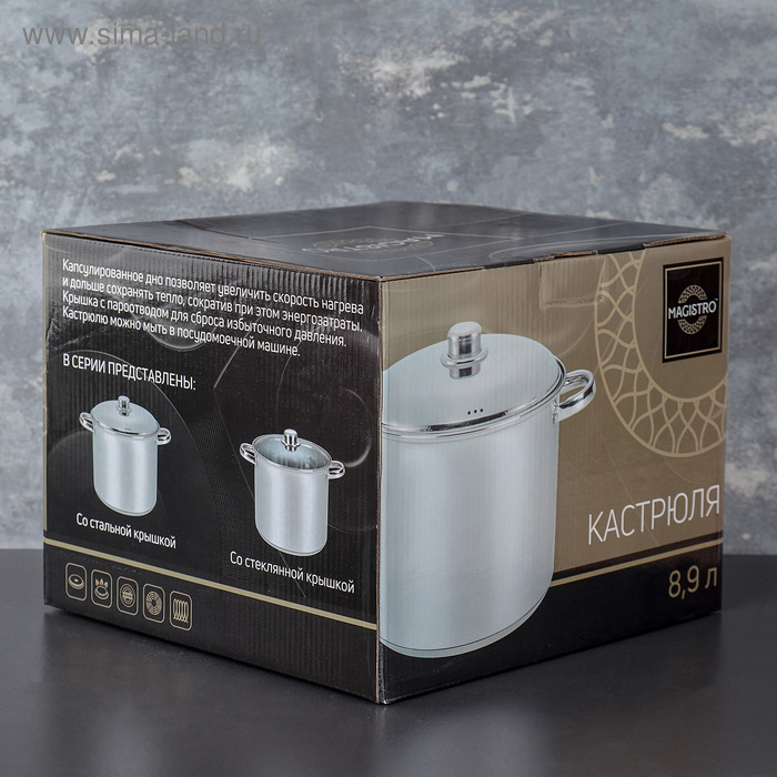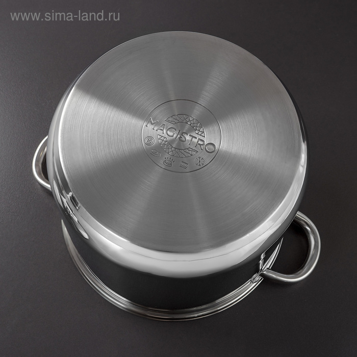 Кастрюля из нержавеющей стали Magistro Grande, 8,9 л, металлическая крышка, капсульное дно, индукция