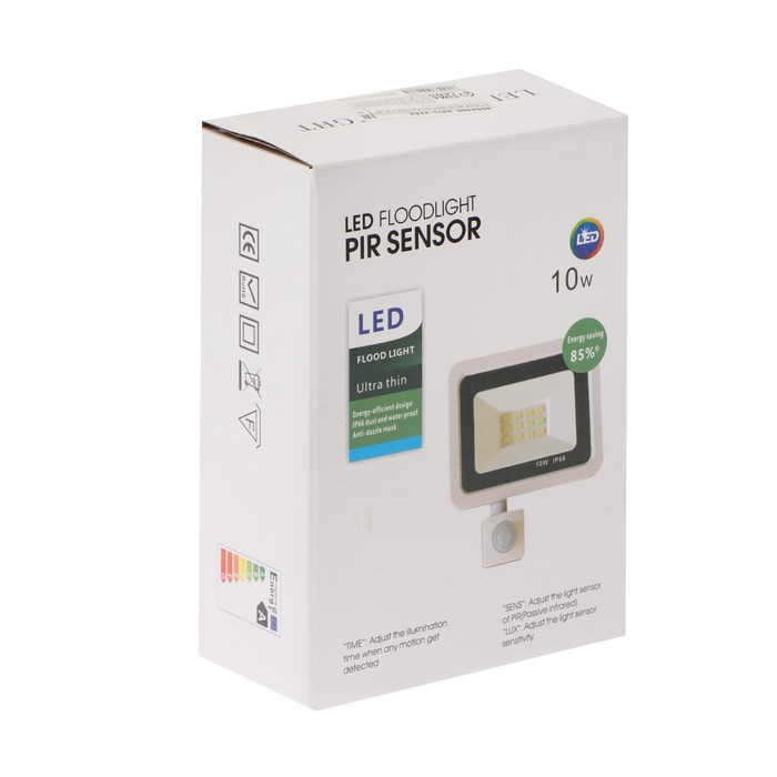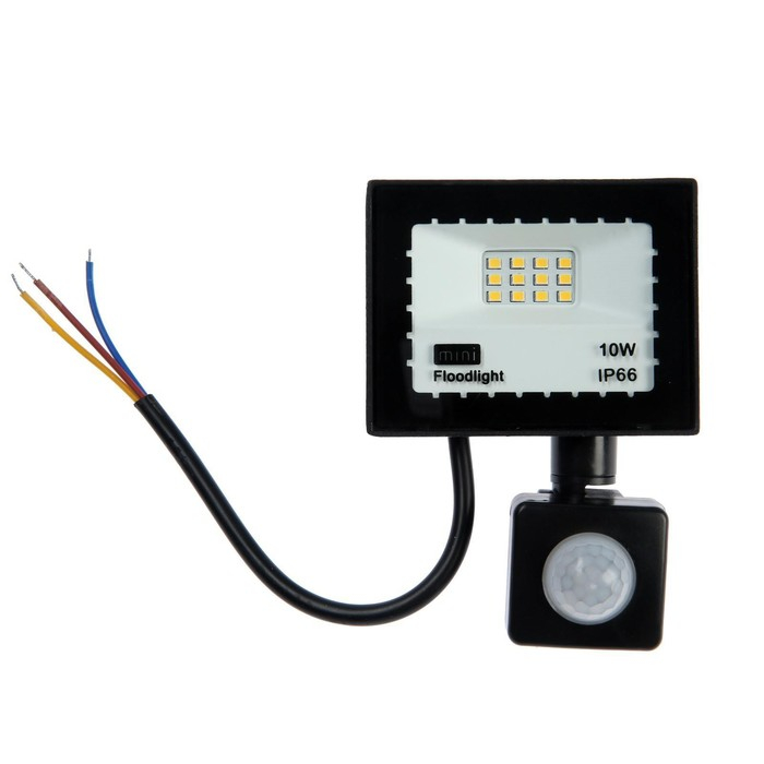 Прожектор светодиодный, 10 Вт, 900 Лм, 4000К, Датчик движения, IP66